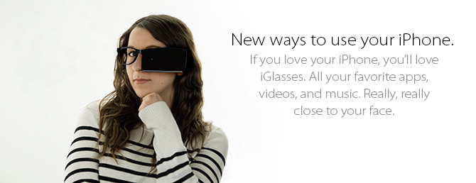 ArcStone is excited to announce our new product, the iGlasses. iGlasses will revolutionize the way people use their smart phones, and run into things. Unlike Google Glass, iGlasses uses your existing smart phone in an entirely new way. Our amazing new technology transforms your iPhone into a wearable eyesore that makes using apps, watching videos, and reading an up close and personal experience.
