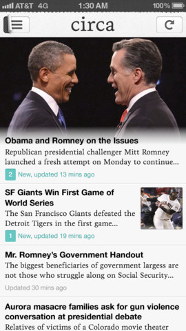 Circa is clean, fresh, and fluff-free. It takes news stories from several sources, grabs the most important bits, and arranges them into an easy-to-read format, short paragraph by paragraph, with maps and images embedded. If you like a story, you follow it. Then, when there's an update to the story, instead of just adding a new story like most news sites would, it updates the one you've already read. It sends you a notification about the update, then opens straight up to the updated page. How's that for snazzy?
